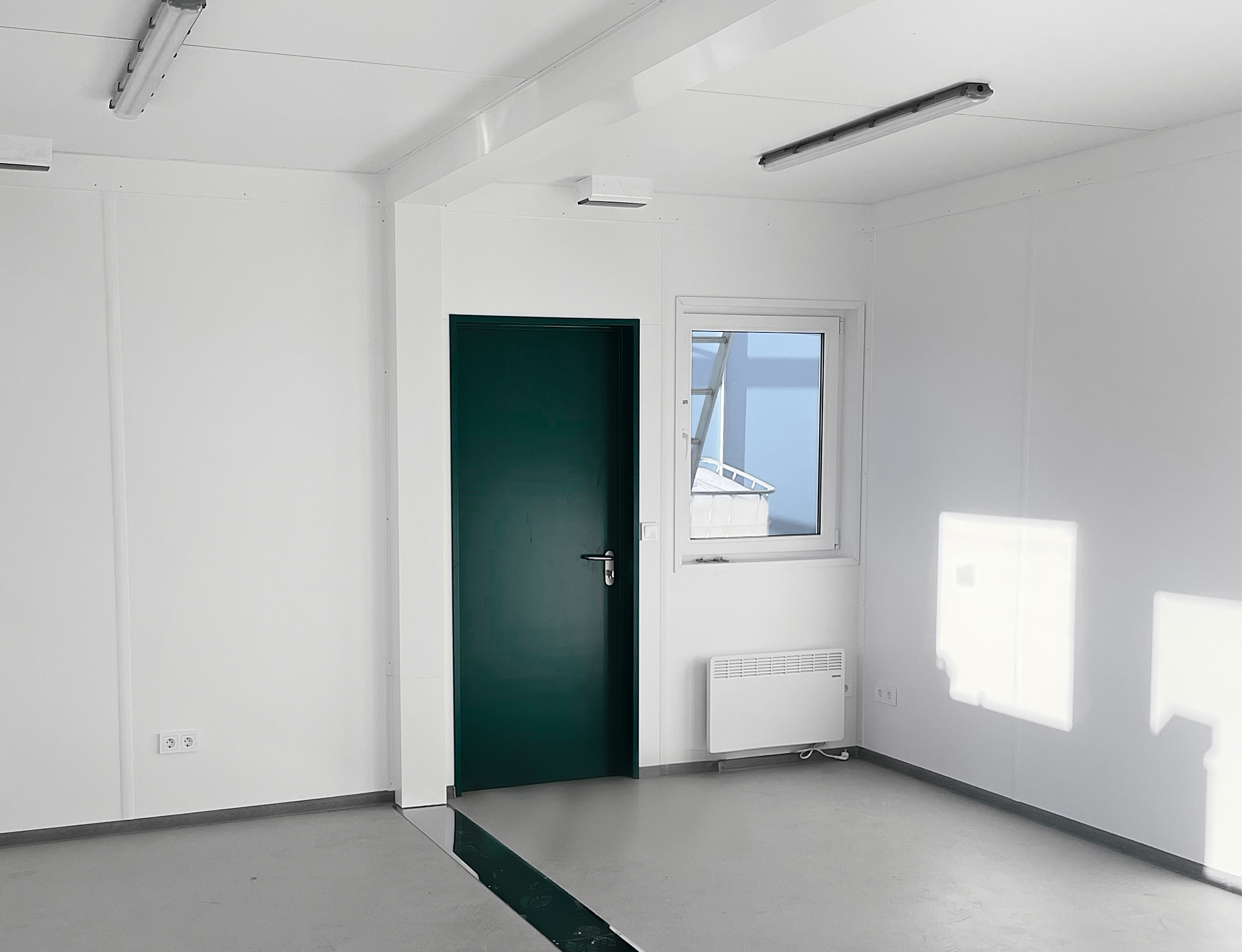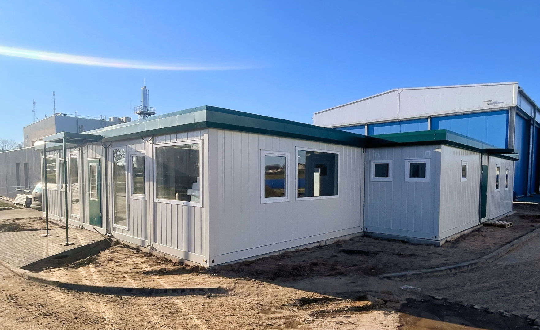 Здание полностью собирают на заводе — цельносварной каркас с отделкой, окнами, дверями и даже оборудованием. Если проект состоит из нескольких модулей, их доставляют поэтапно (в стандартный прицеп помещается до трёх блоков).