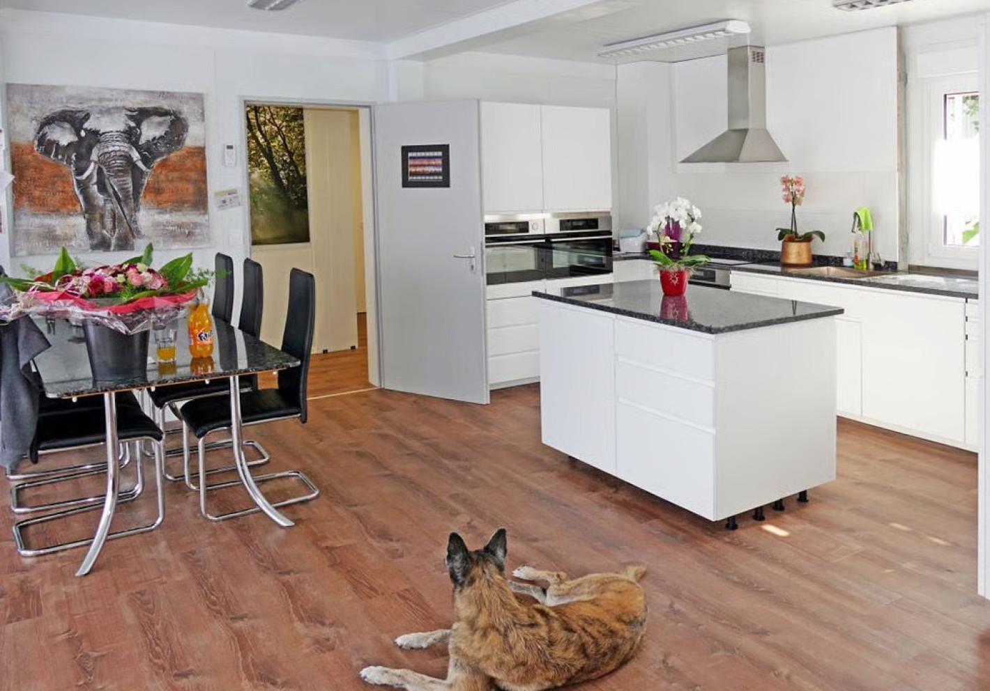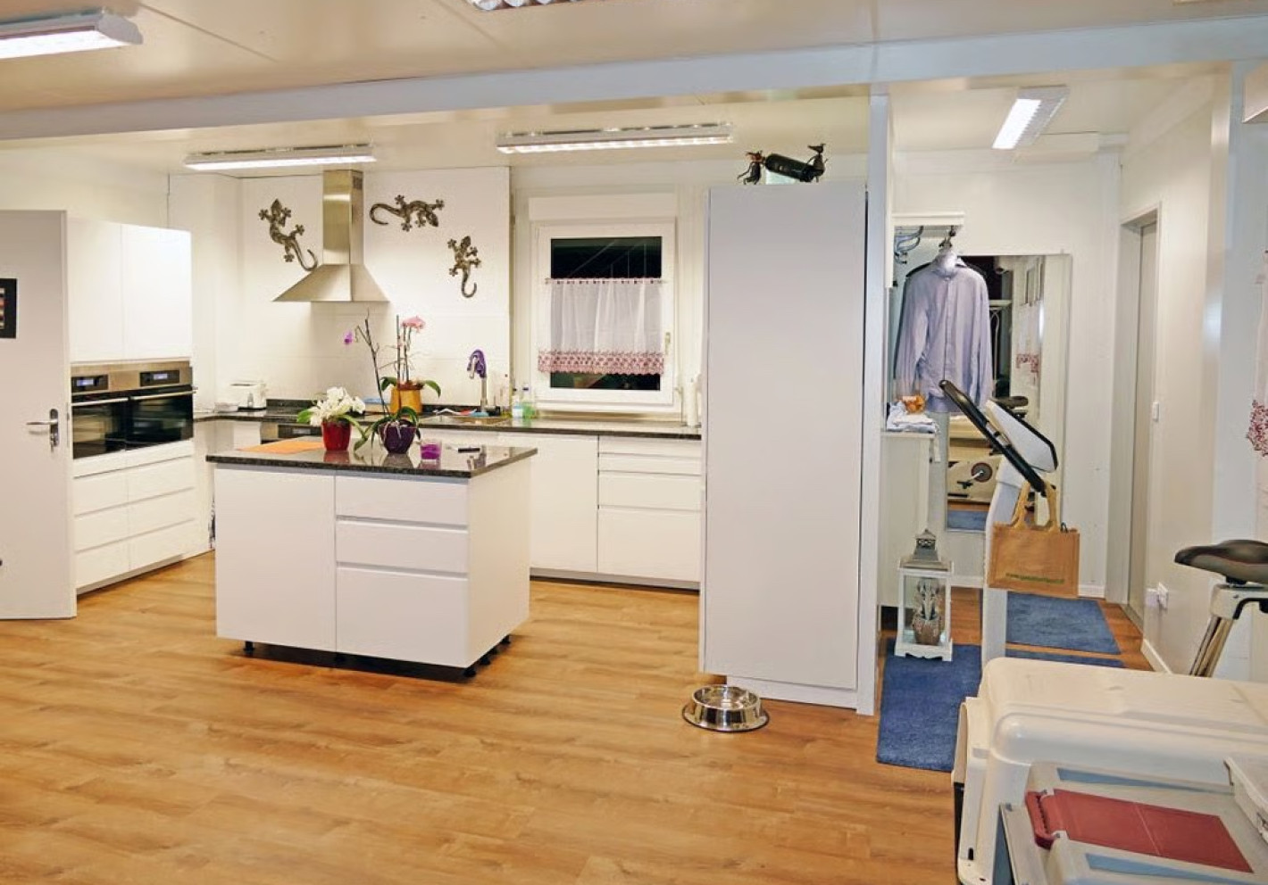 Система заменяемых стеновых элементов позволяет менять местами стены, двери, окна, перегородки и изменять планировку здания.