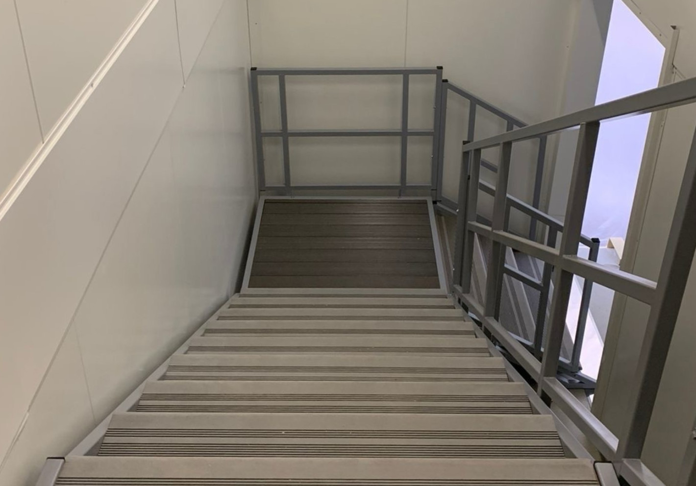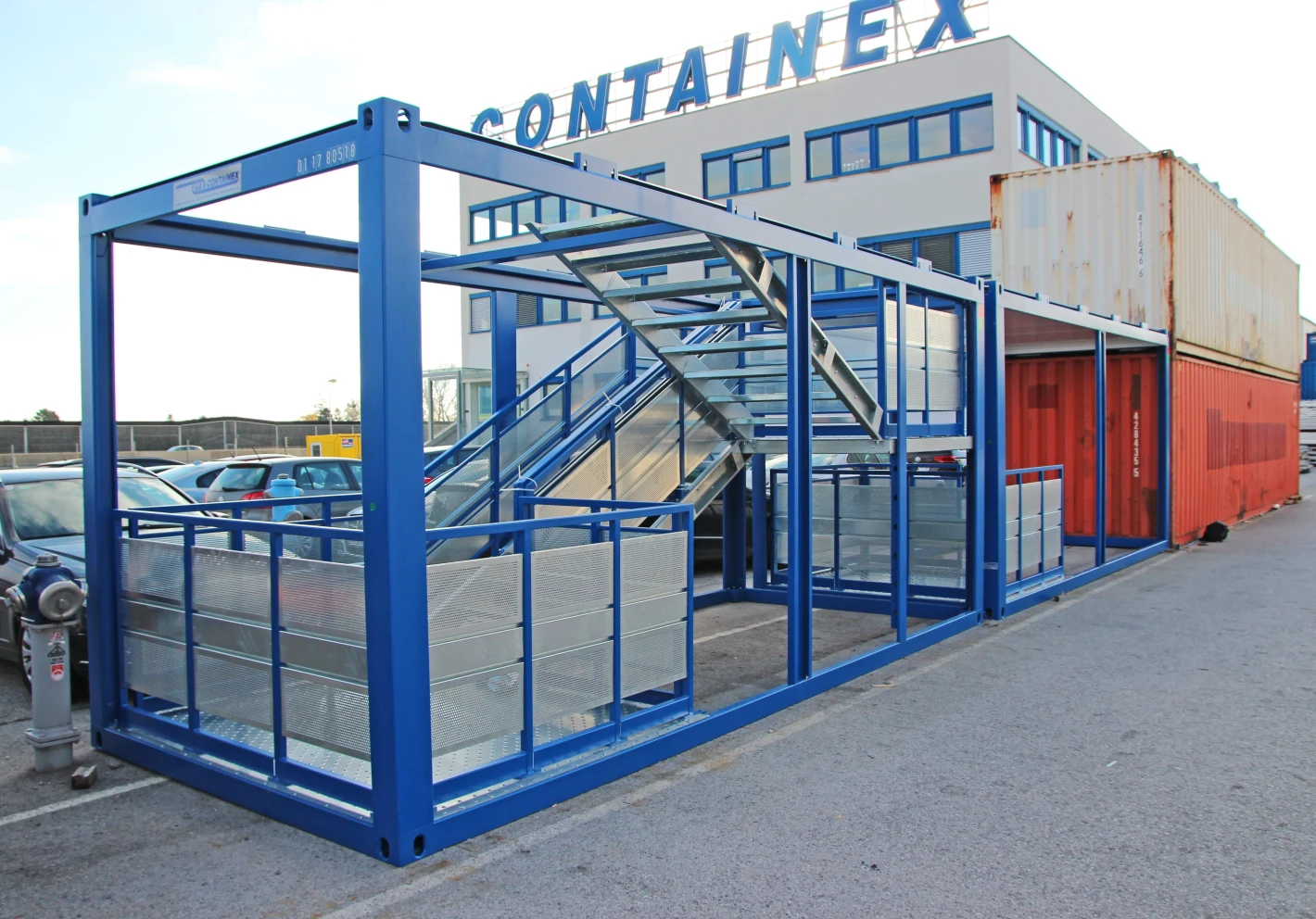 Лестницы Containex — безопасные, адаптивные, прямые или разворотные, с выбором материалов.