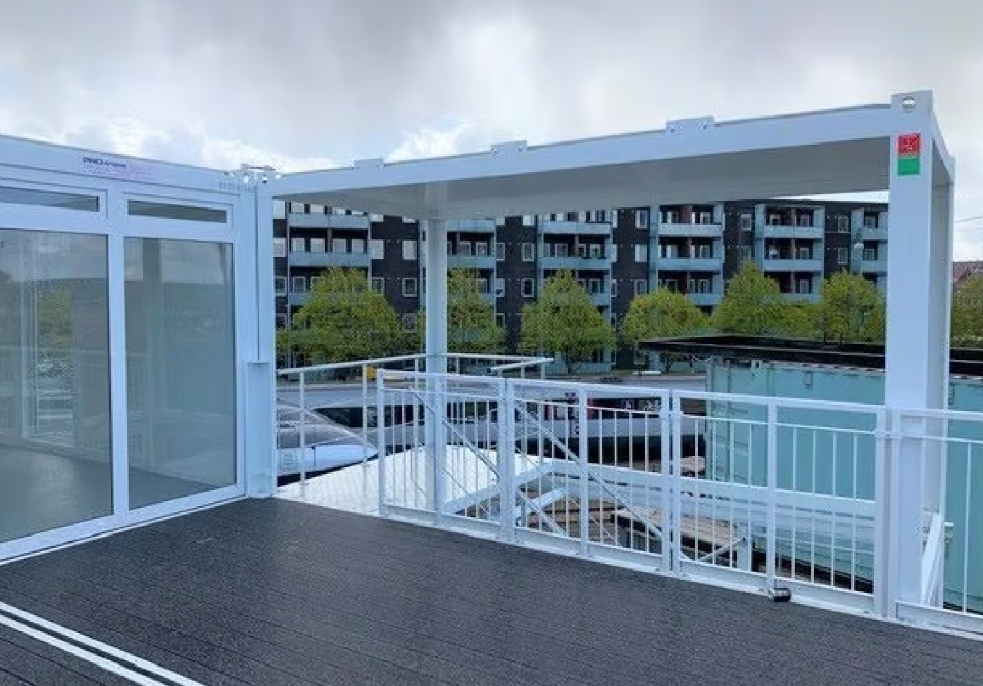 20-футовый контейнер-терраса может быть интегрирован с лестничными решениями, образуя функциональные переходные зоны внутри или снаружи здания.