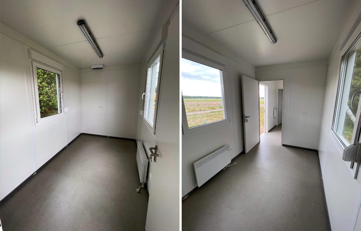 Диспетчерский пункт малой авиации на базе двух блок-контейнеров, размещённый на аэродроме.
