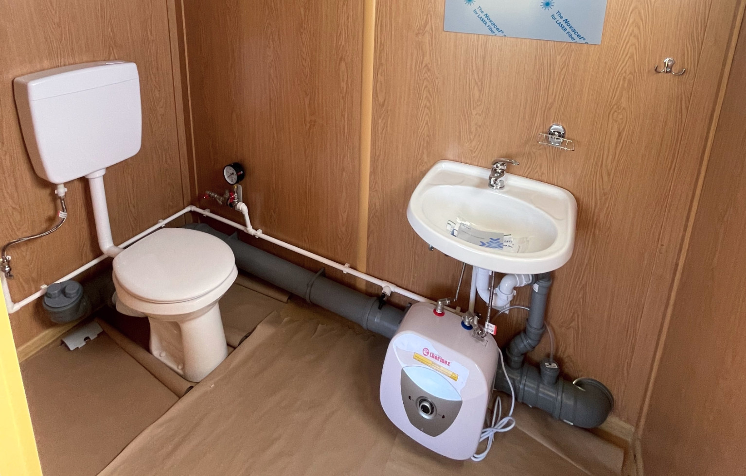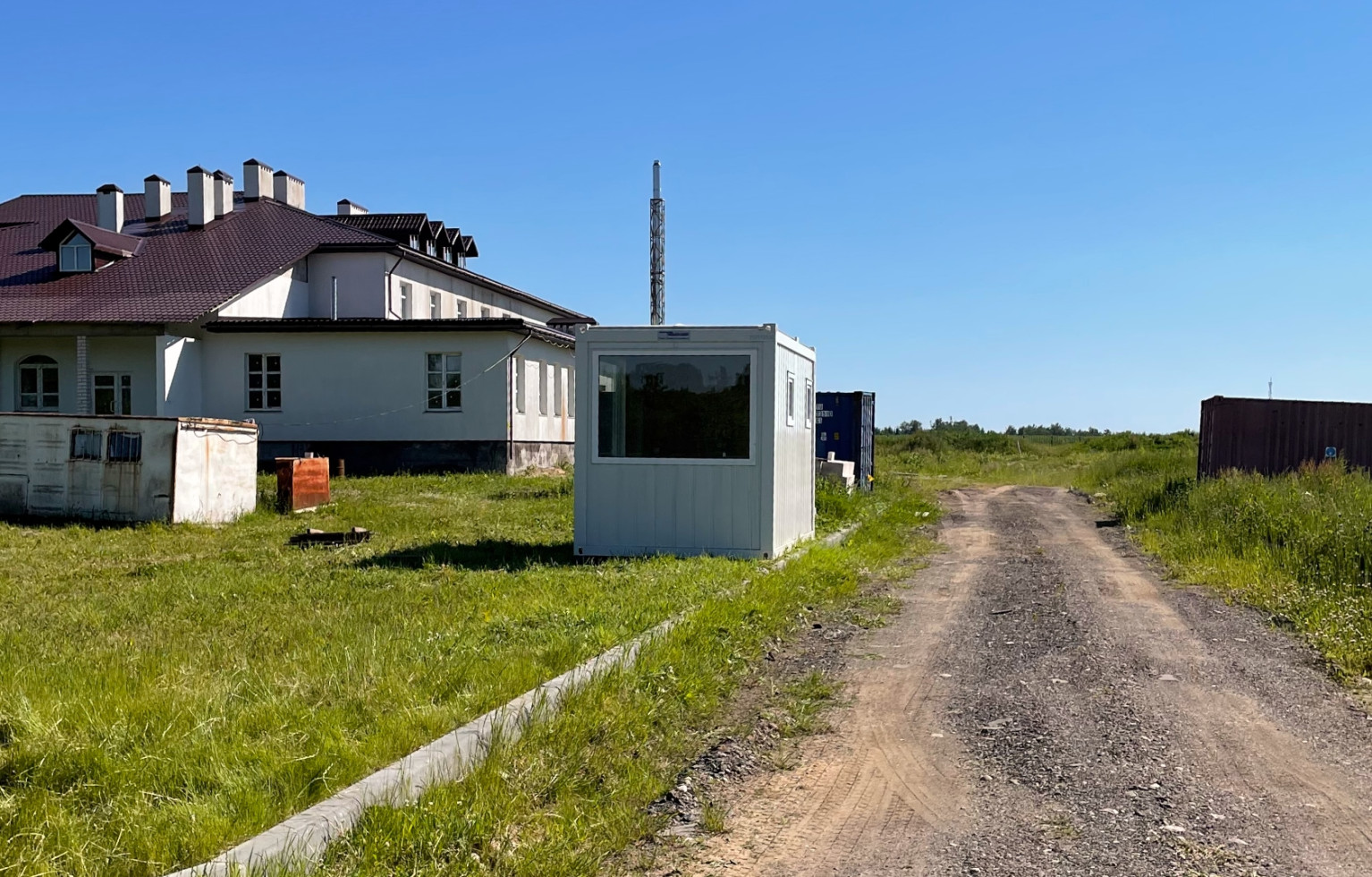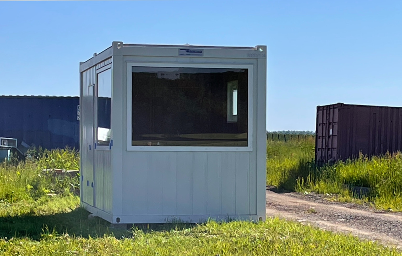 Контрольно-пропускной пункт с санитарным узлом на базе отдыха, выполненный из одного блок-контейнера.