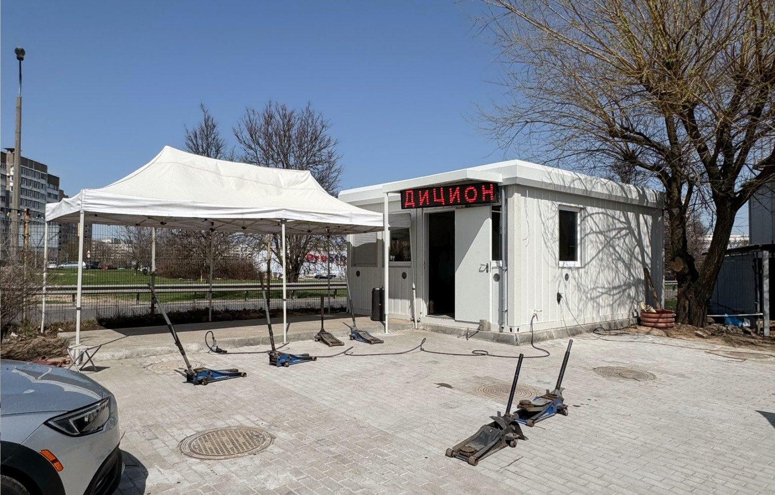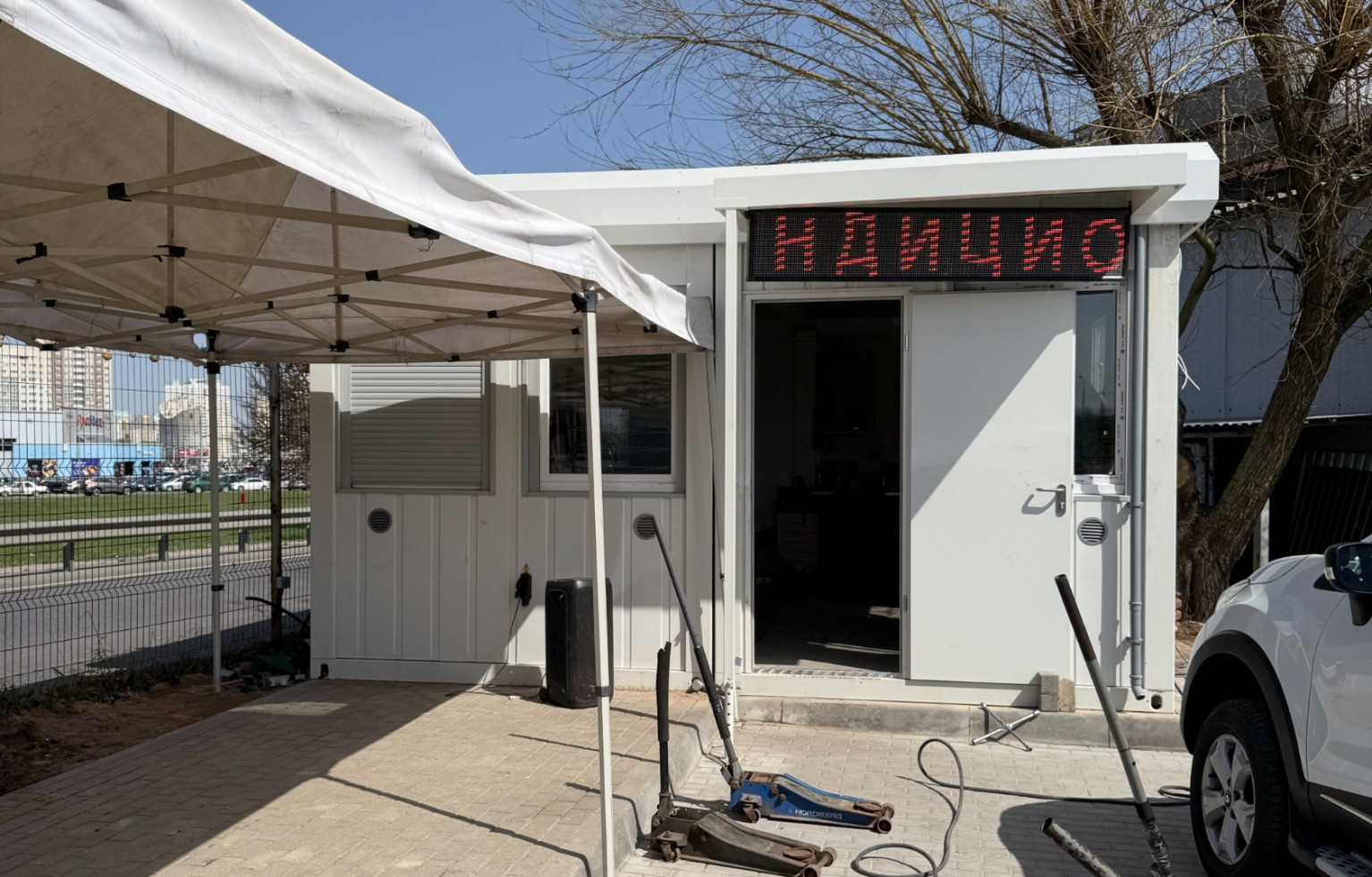 Расширение шиномонтажного модуля за счёт пристройки дополнительного блок-контейнера.