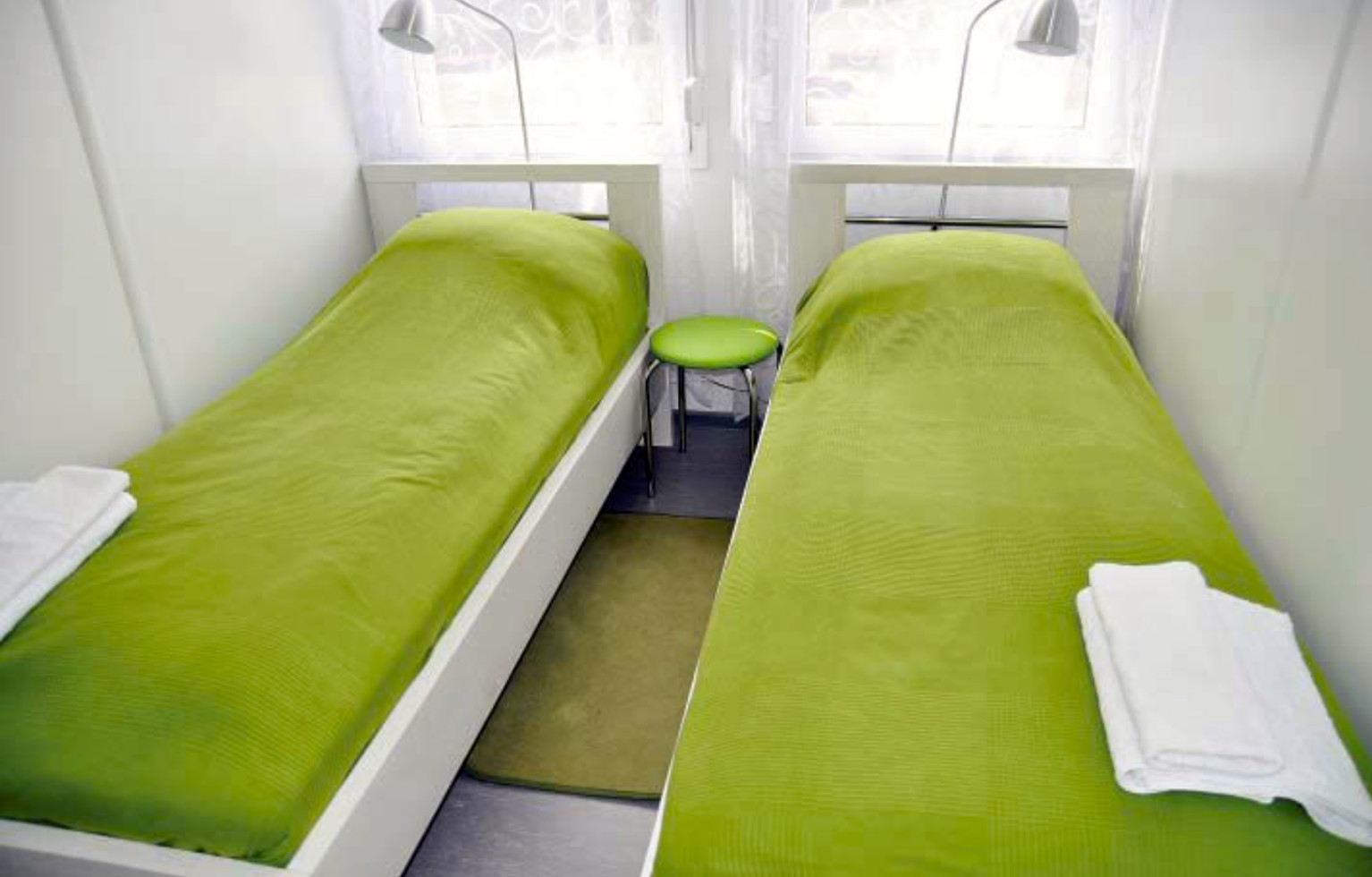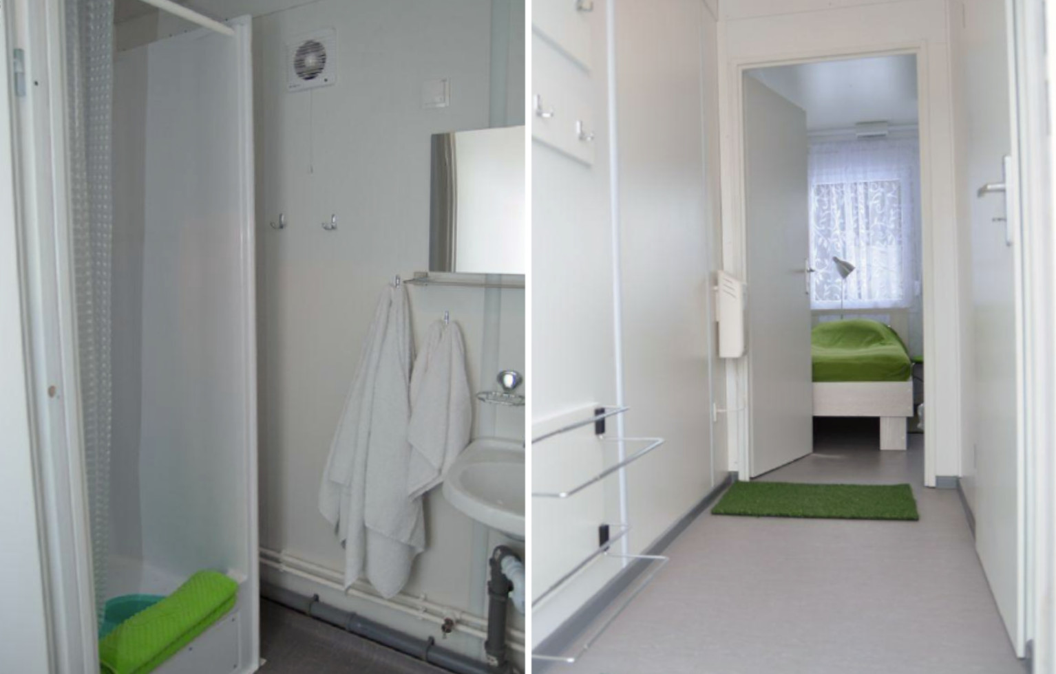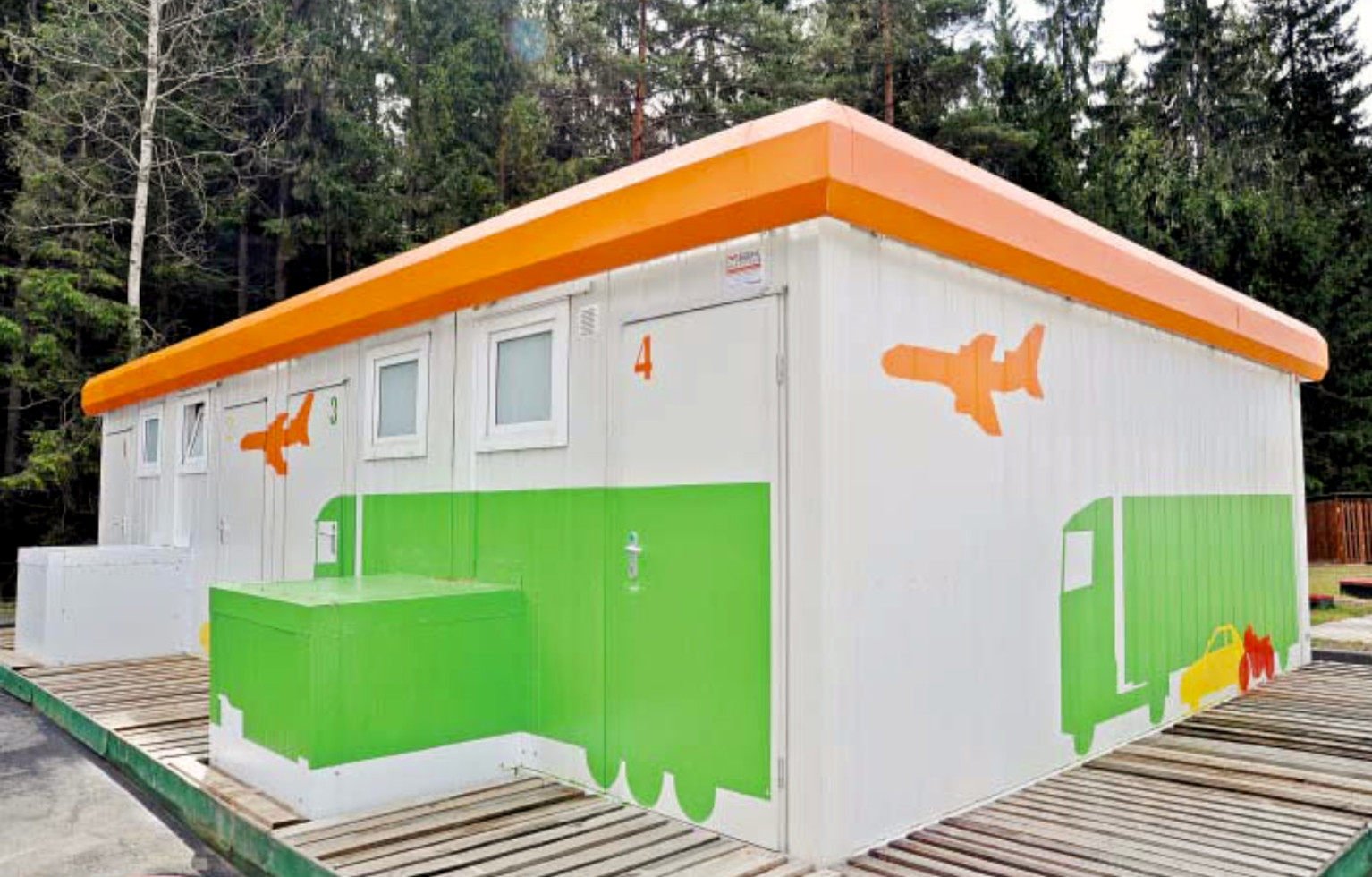 Гостиница для водителей на территории автозаправочной станции из четырёх блок-контейнеров с декоративной аттикой.