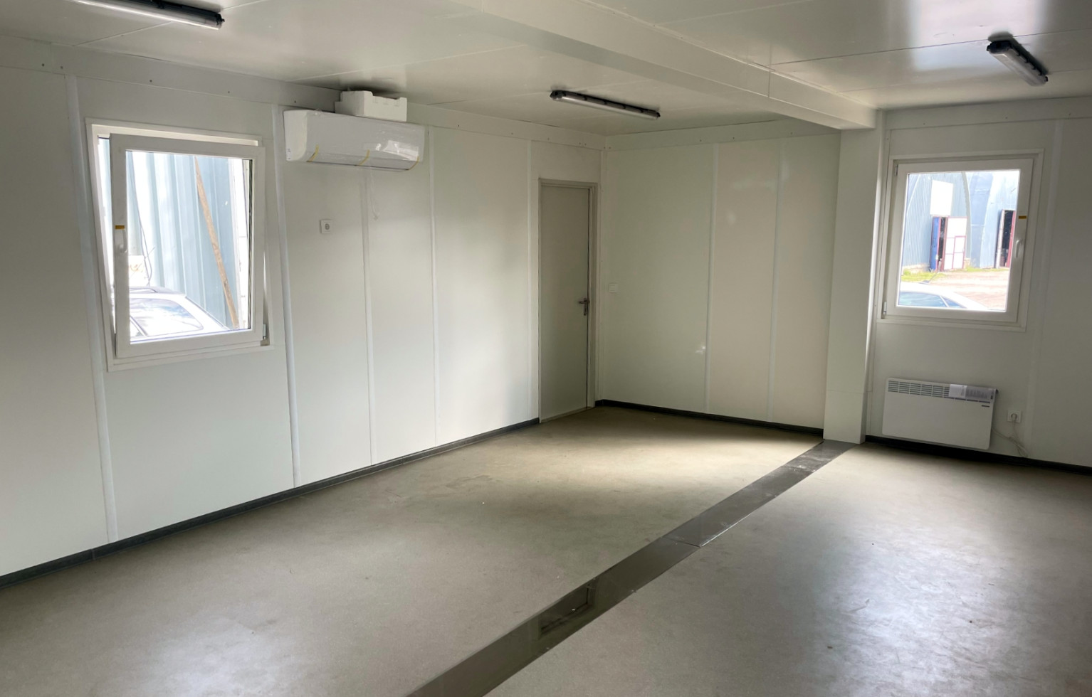 Блок-контейнер установлен в качестве офисного помещения для административного персонала складского предприятия.