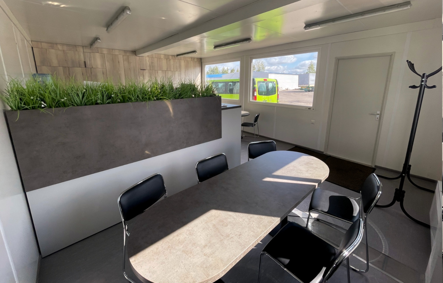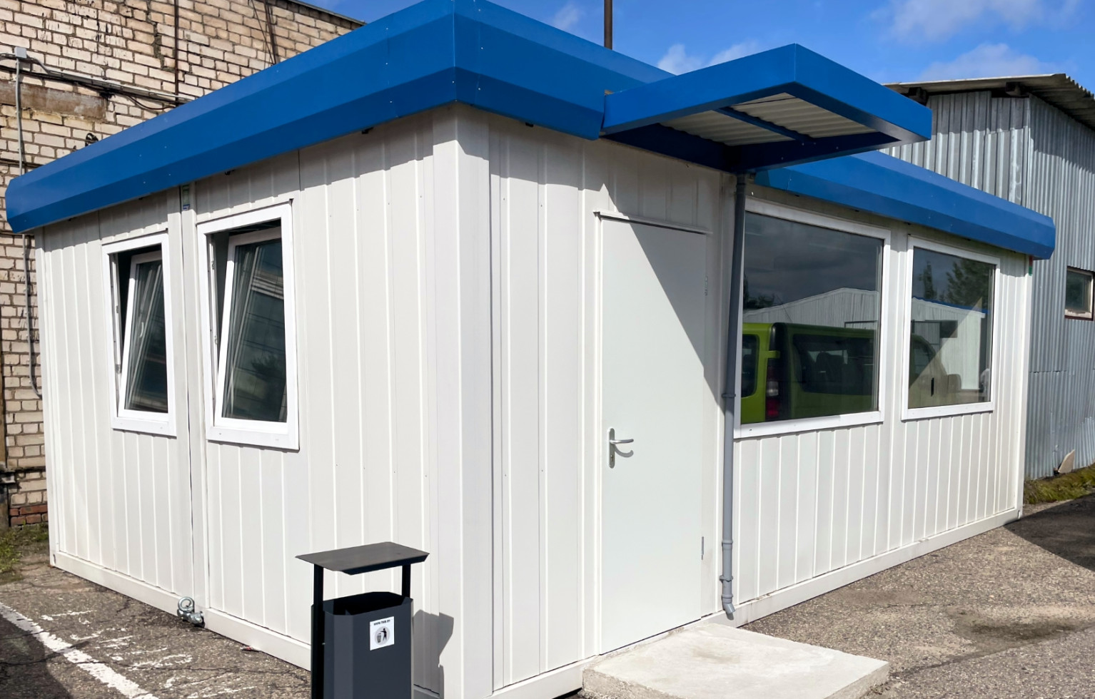 Блок-контейнер установлен в качестве офисного помещения для административного персонала складского предприятия.