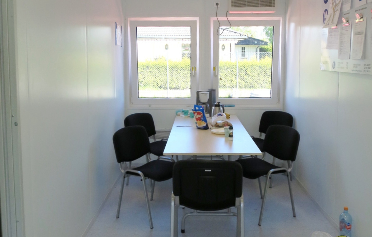 Блок-контейнер установлен в качестве офисного помещения для административного персонала складского предприятия.
