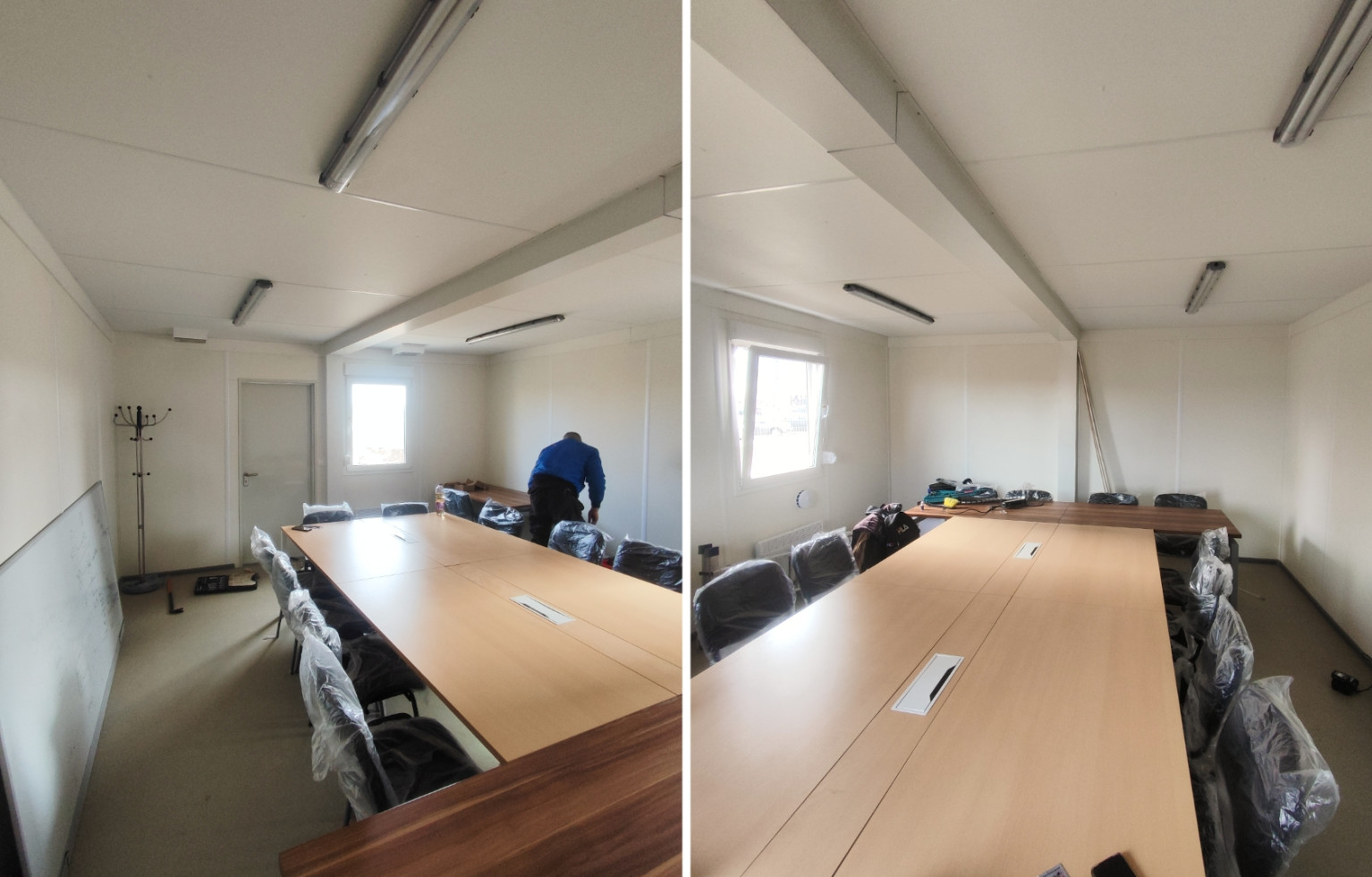Переговорная на строительной площадке, организованная на базе двух блок-контейнеров.