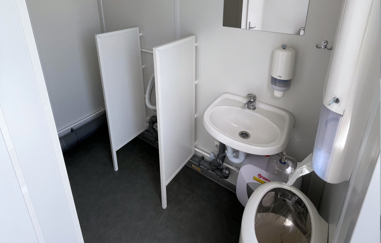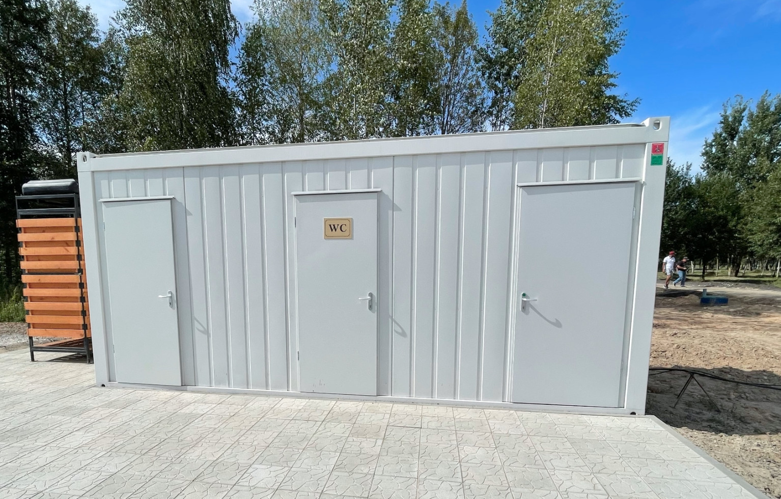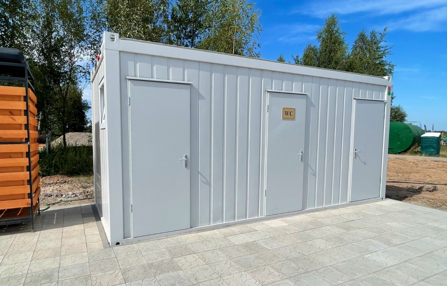 Туалет с мужским, женским отделениями и помещением для маломобильных групп на базе одного блок-контейнера с оборудованным септиком.