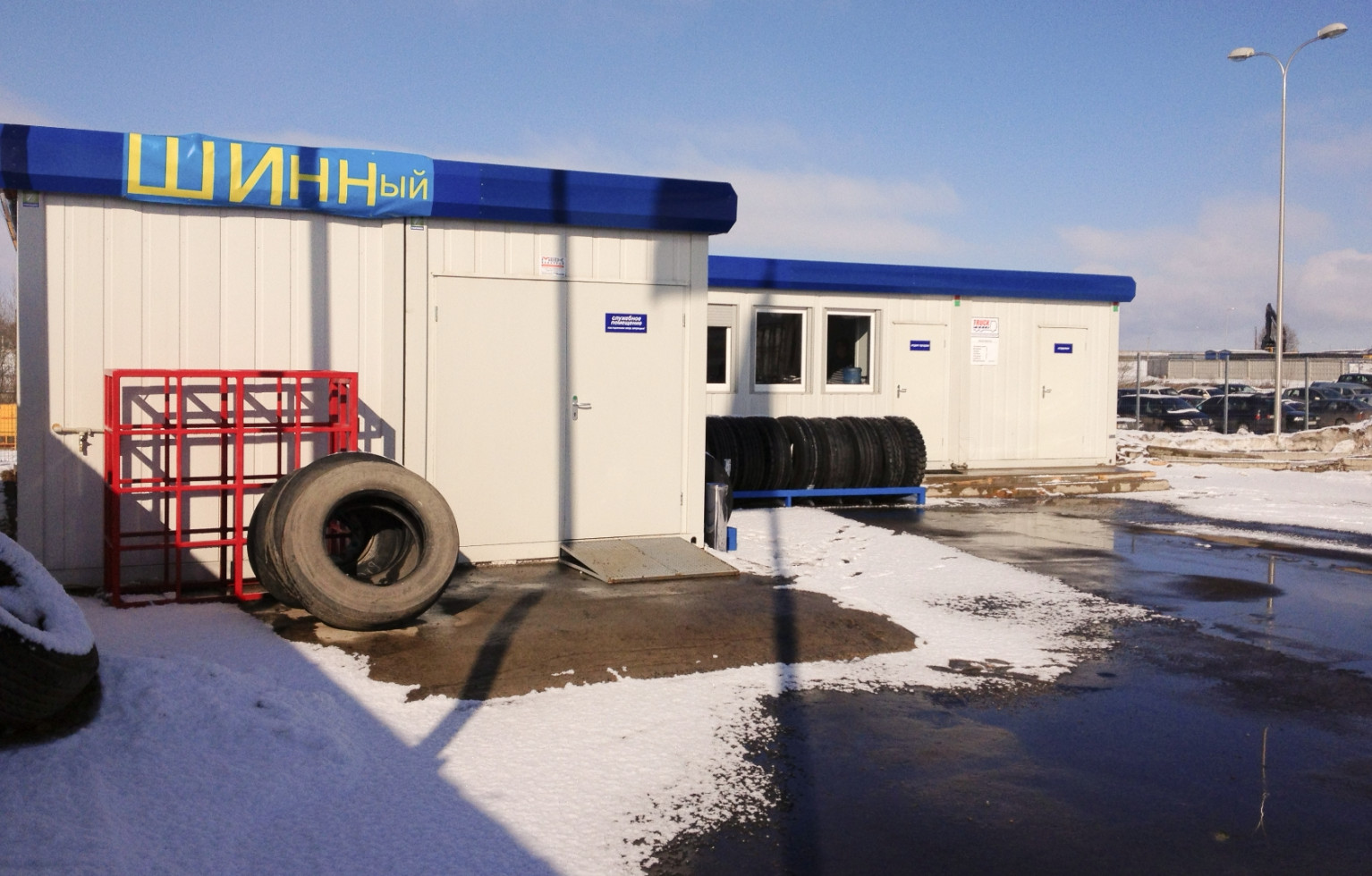 Расширение шиномонтажного модуля за счёт пристройки дополнительного блок-контейнера.
