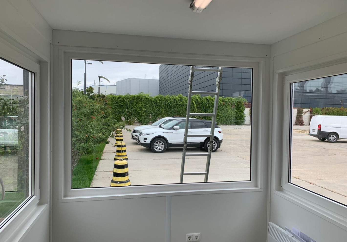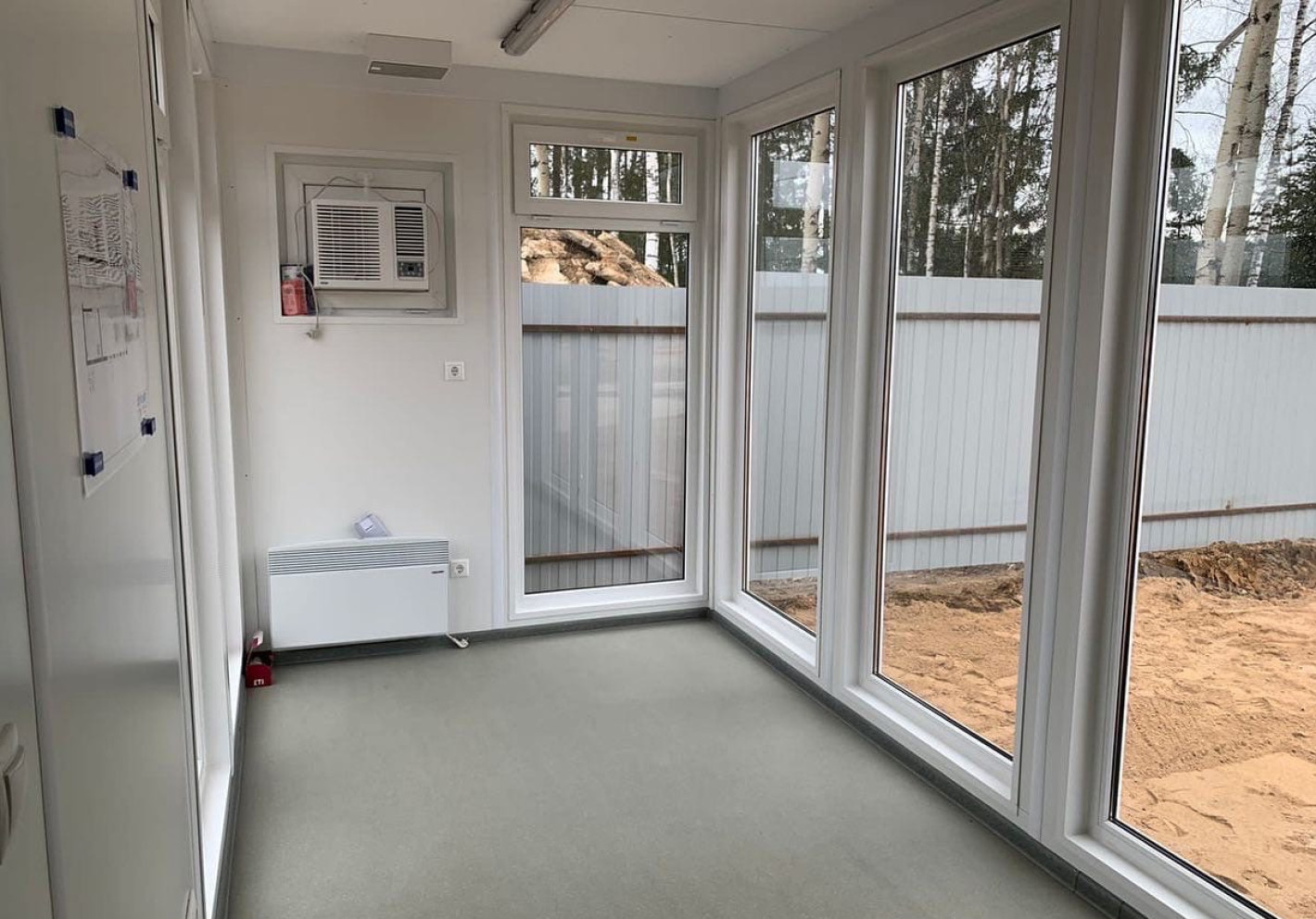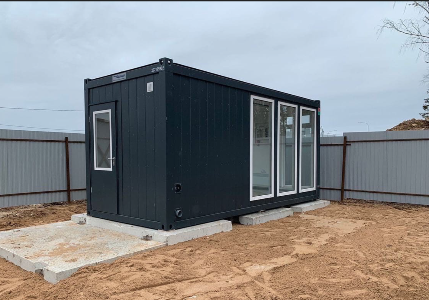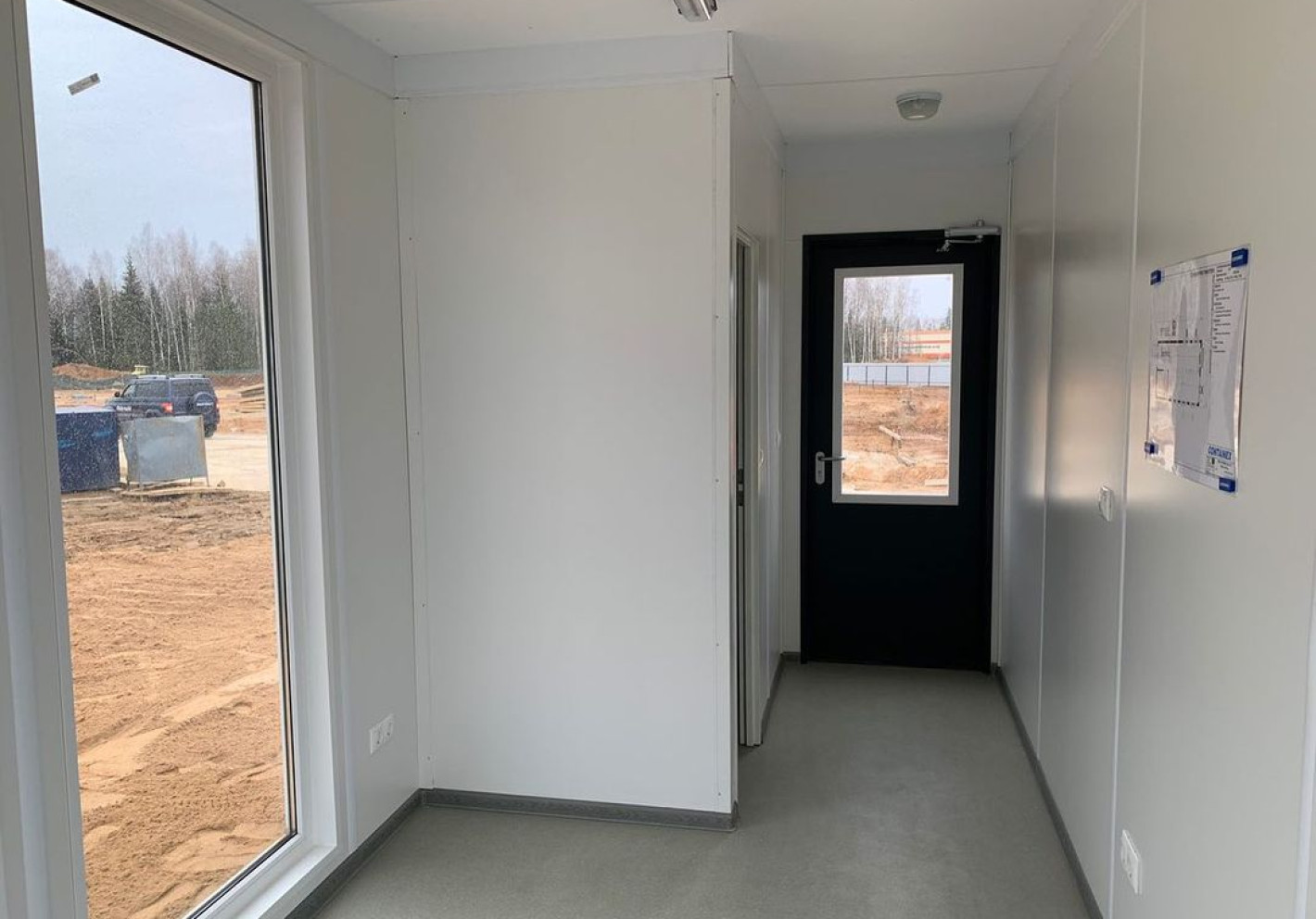 КПП охраны модульный комплектуется электропроводкой, розетками, освещением, возможностью подключения видеонаблюдения и связи. При необходимости в модуль можно интегрировать дополнительные окна для обзорности, жалюзи, стойку с оборудованием или отдельный санузел. Мобильная проходная такого формата подходит как для крупных объектов, так и для временных точек контроля на открытых площадках.