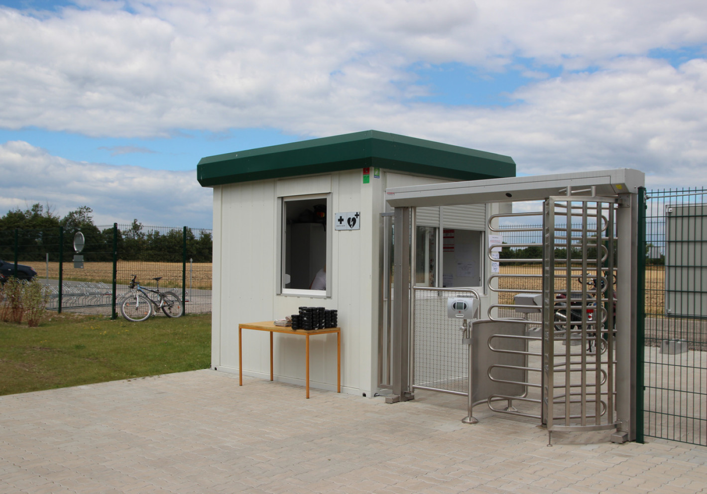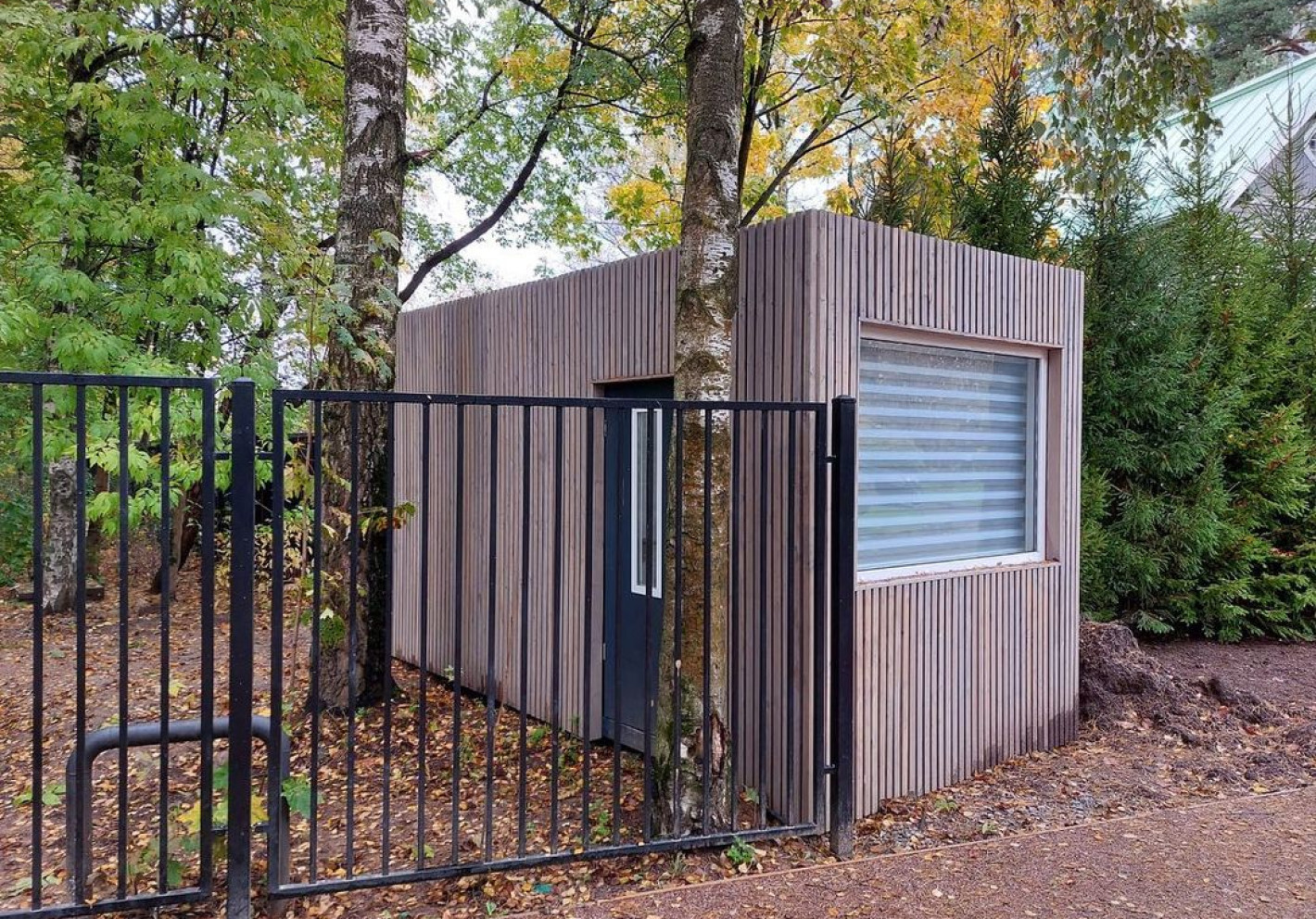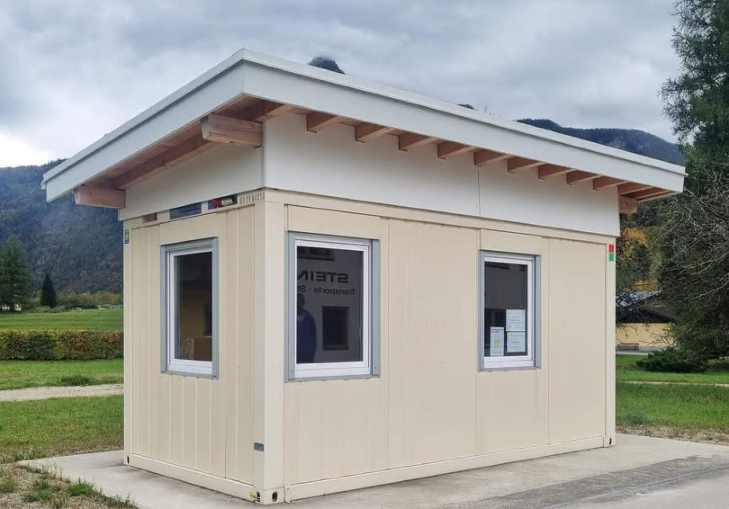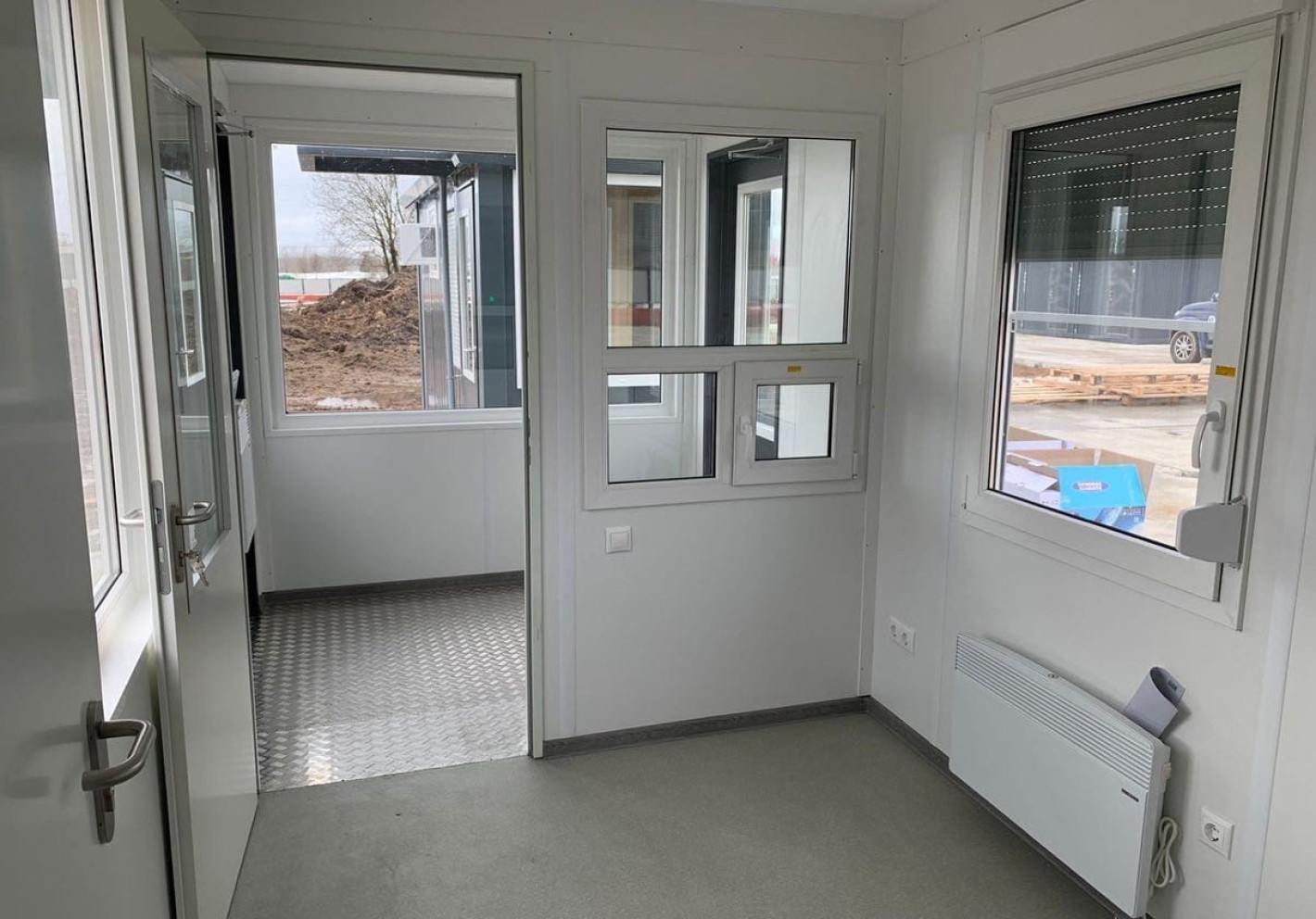 КПП охраны модульный комплектуется электропроводкой, розетками, освещением, возможностью подключения видеонаблюдения и связи. При необходимости в модуль можно интегрировать дополнительные окна для обзорности, жалюзи, стойку с оборудованием или отдельный санузел. Мобильная проходная такого формата подходит как для крупных объектов, так и для временных точек контроля на открытых площадках.