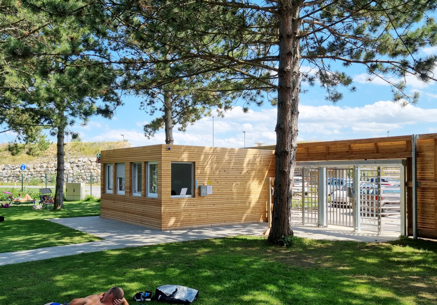 Модульное здание КПП спроектировано для круглогодичного использования: стены и кровля утеплены, устанавливаются стеклопакеты, системы отопления и вентиляции. Все конструкции соответствуют санитарным и эксплуатационным требованиям, принятым в Республике Беларусь для временных и постоянных зданий охранного назначения.