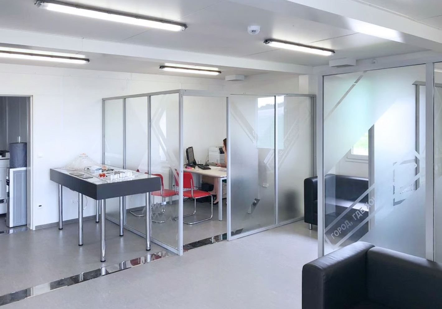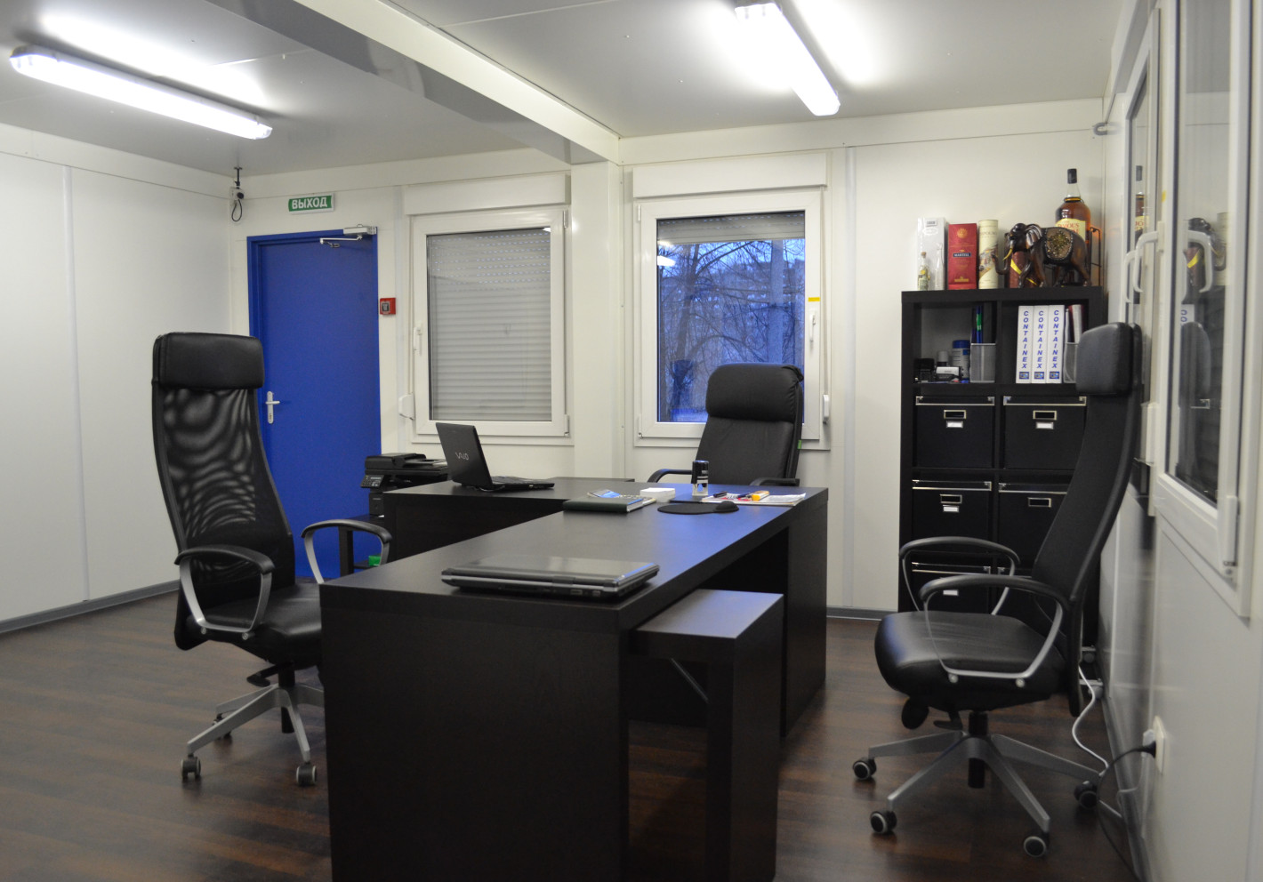 Каждый мобильный офис представляет собой полностью готовое к использованию помещение. В нём могут размещаться рабочие места, кабинеты, переговорные или бытовые зоны.