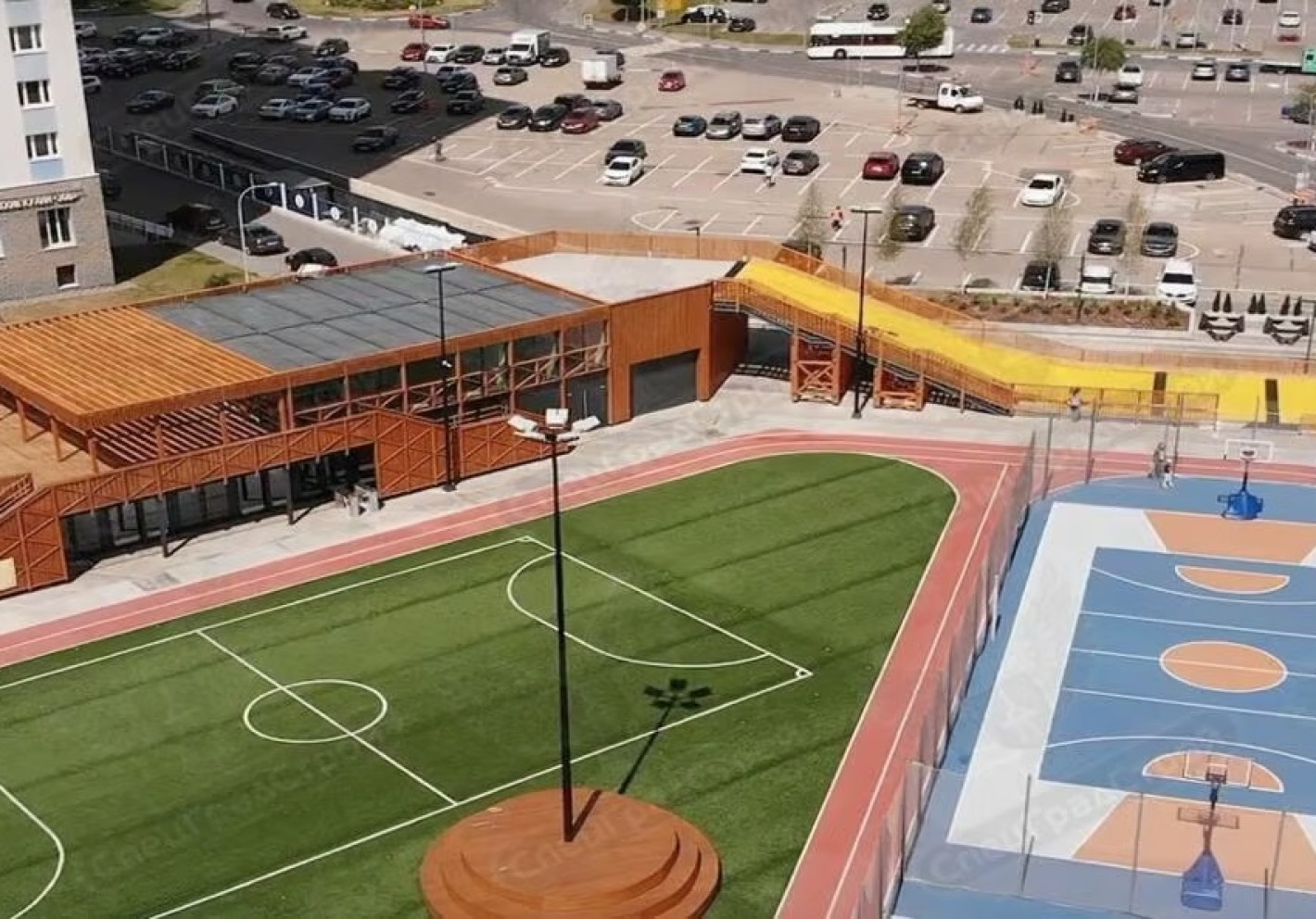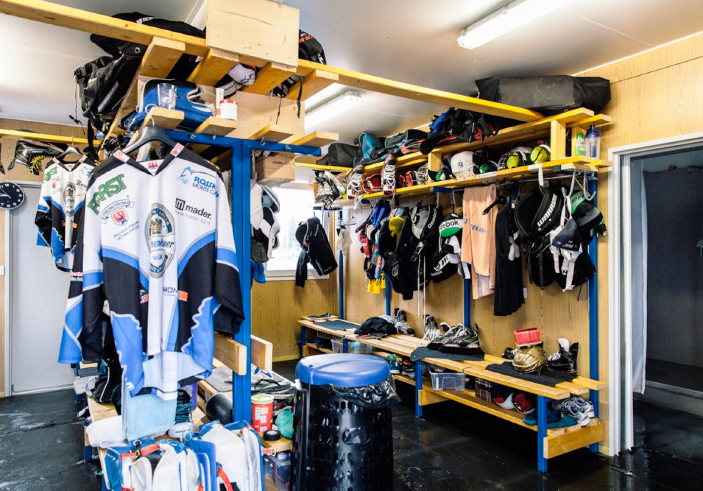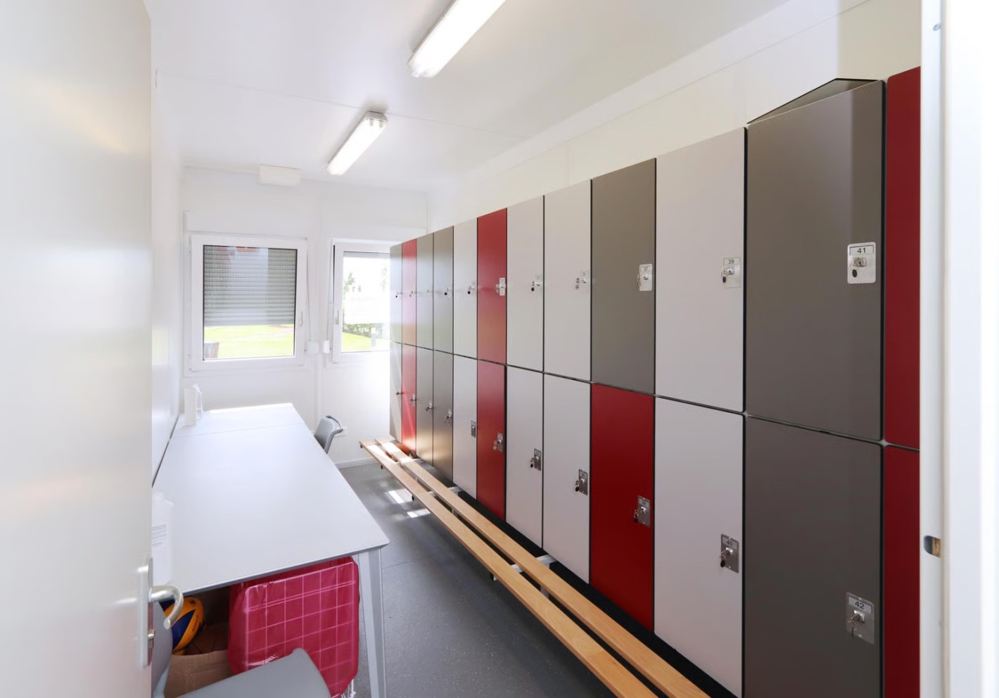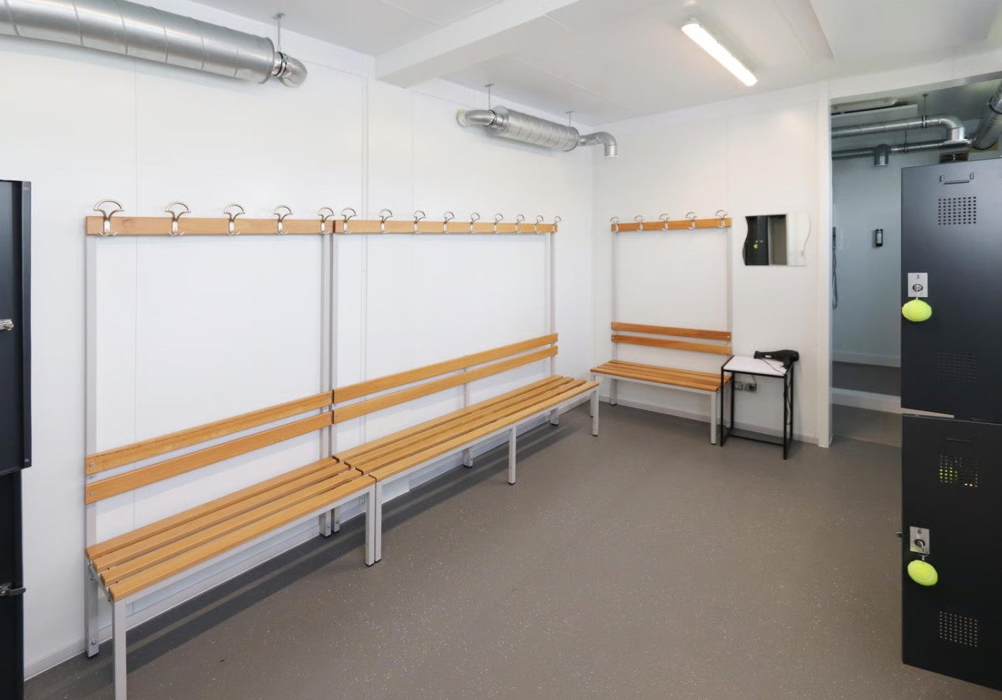 - Комплекс раздевалок — если нужно организовать потоки, например, для мужской и женской аудитории, или разделить зону хранения, душевые и санузлы.